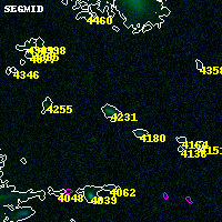 Object #4231 x,y = (2485, 2264) RA, Dec = (04:54:15.552, 02:54:07.92) = (73.56480, 2.90220) BPZ = 0.345 [0.169--3.139] type = 8.60 (SB2_B10 - SB1_B10) chisq2 = 0.00 ODDS = 0.29 z_cluster = 0.203