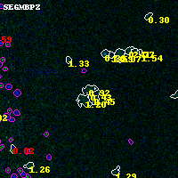 Object #426 x,y = (4365, 451) RA, Dec = (04:54:08.016, 02:52:19.20) = (73.53340, 2.87200) BPZ = 0.916 [0.721--1.795] type = 9.00 (SB2_B10) chisq2 = 0.62 ODDS = 0.31 z_cluster = 0.203