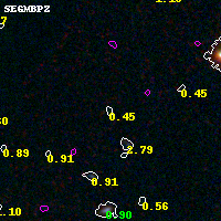 Object #4418 x,y = (4208, 2331) RA, Dec = (04:54:08.640, 02:54:11.88) = (73.53600, 2.90330) BPZ = 0.446 [0.183--4.306] type = 9.60 (SB3_B10 - SB2_B10) chisq2 = 0.61 ODDS = 0.10 z_cluster = 0.203