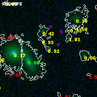 Object #4573 x,y = (2542, 2400) RA, Dec = (04:54:15.312, 02:54:16.20) = (73.56380, 2.90450) BPZ = 0.918 [0.744--2.762] type = 5.90 (Sbc_B10 - ES0_B10) chisq2 = 0.02 ODDS = 0.24 z_cluster = 0.203