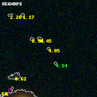 Object #4575 x,y = (5319, 2402) RA, Dec = (04:54:04.200, 02:54:16.20) = (73.51750, 2.90450) BPZ = 4.046 [3.472--4.358] type = 9.80 (SB3_B10 - SB2_B10) chisq2 = 0.46 ODDS = 0.60 z_cluster = 0.203