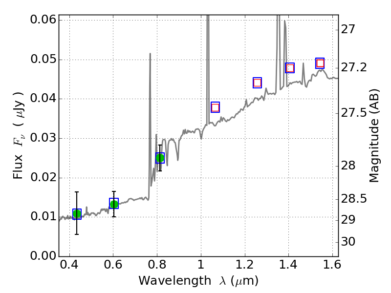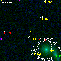 Object #4707   x,y = (2418, 2453)   RA, Dec = (04:54:15.816, 02:54:19.44) = (73.56590, 2.90540)   BPZ = 1.056 [0.176--3.788]   type = 8.40 (SB1_B10 - SB2_B10)   chisq2 = 0.00   ODDS = 0.08   z_cluster = 0.203