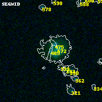 Object #485 x,y = (6737, 466) RA, Dec = (04:53:58.512, 02:52:19.92) = (73.49380, 2.87220) BPZ = 0.481 [0.039--2.722] type = 7.30 (Scd_B10 - SB1_B10) chisq2 = 0.00 ODDS = 0.55 z_cluster = 0.203