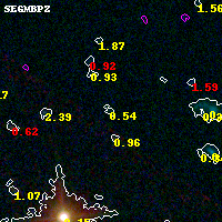 Object #4877 x,y = (6110, 2522) RA, Dec = (04:54:01.032, 02:54:23.40) = (73.50430, 2.90650) BPZ = 0.537 [0.128--3.518] type = 7.90 (SB1_B10 - Scd_B10) chisq2 = 0.03 ODDS = 0.07 z_cluster = 0.203