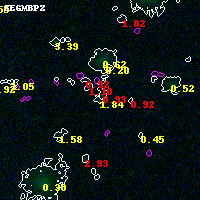 Object #4933 x,y = (2657, 2545) RA, Dec = (04:54:14.856, 02:54:24.84) = (73.56190, 2.90690) BPZ = 1.844 [0.325--3.020] type = 9.80 (SB3_B10 - SB2_B10) chisq2 = 0.03 ODDS = 0.13 z_cluster = 0.203