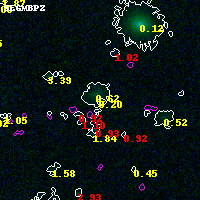 Object #5014 x,y = (2663, 2579) RA, Dec = (04:54:14.832, 02:54:27.00) = (73.56180, 2.90750) BPZ = 0.204 [0.125--2.699] type = 9.90 (SB3_B10 - SB2_B10) chisq2 = 0.05 ODDS = 0.05 z_cluster = 0.203