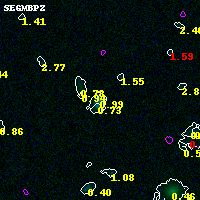 Object #5019 x,y = (1838, 2580) RA, Dec = (04:54:18.144, 02:54:27.00) = (73.57560, 2.90750) BPZ = 0.986 [0.793--1.557] type = 9.00 (SB2_B10) chisq2 = 0.00 ODDS = 0.39 z_cluster = 0.203