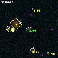 Object #5037 x,y = (5049, 2585) RA, Dec = (04:54:05.280, 02:54:27.36) = (73.52200, 2.90760) BPZ = 1.043 [0.976--1.107] type = 9.30 (SB2_B10 - SB3_B10) chisq2 = 0.29 ODDS = 0.99 z_cluster = 0.203
