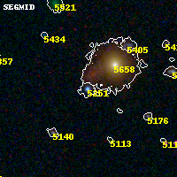 Object #5251 x,y = (4449, 2676) RA, Dec = (04:54:07.680, 02:54:32.76) = (73.53200, 2.90910) BPZ = 0.028 [0.011--0.045] type = 10.30 (SB3_B10 - SB11_A_0_l) chisq2 = 10.20 ODDS = 1.00 z_cluster = 0.203