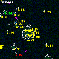 Object #5528 x,y = (6566, 2775) RA, Dec = (04:53:59.208, 02:54:38.52) = (73.49670, 2.91070) BPZ = 0.663 [0.485--2.149] type = 9.60 (SB3_B10 - SB2_B10) chisq2 = 0.01 ODDS = 0.11 z_cluster = 0.203
