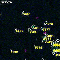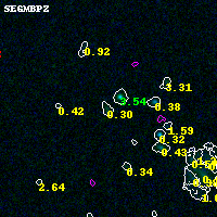 Object #5656 x,y = (6472, 2823) RA, Dec = (04:53:59.568, 02:54:41.40) = (73.49820, 2.91150) BPZ = 0.302 [0.177--3.558] type = 8.10 (SB1_B10 - SB2_B10) chisq2 = 0.35 ODDS = 0.14 z_cluster = 0.203