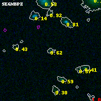 Object #5855 x,y = (1818, 2904) RA, Dec = (04:54:18.216, 02:54:46.44) = (73.57590, 2.91290) BPZ = 0.624 [0.427--2.339] type = 9.30 (SB2_B10 - SB3_B10) chisq2 = 0.03 ODDS = 0.11 z_cluster = 0.203