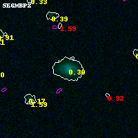 Object #5911 x,y = (3995, 2922) RA, Dec = (04:54:09.504, 02:54:47.52) = (73.53960, 2.91320) BPZ = 0.301 [0.206--0.416] type = 7.80 (SB1_B10 - Scd_B10) chisq2 = 0.00 ODDS = 0.66 z_cluster = 0.203