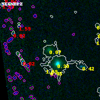 Object #5912 x,y = (780, 2910) RA, Dec = (04:54:22.368, 02:54:46.80) = (73.59320, 2.91300) BPZ = 0.065 [0.031--3.083] type = 4.10 (Ell4_A_0 - ES0_B10) chisq2 = 0.00 ODDS = 0.36 z_cluster = 0.203