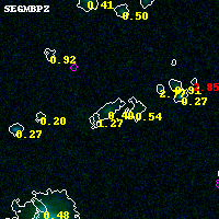 Object #600 x,y = (6804, 569) RA, Dec = (04:53:58.248, 02:52:26.40) = (73.49270, 2.87400) BPZ = 0.402 [0.088--3.020] type = 9.10 (SB2_B10 - SB3_B10) chisq2 = 0.00 ODDS = 0.17 z_cluster = 0.203