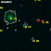 Object #6060 x,y = (1962, 2974) RA, Dec = (04:54:17.640, 02:54:50.40) = (73.57350, 2.91400) BPZ = 0.665 [0.552--1.986] type = 9.40 (SB2_B10 - SB3_B10) chisq2 = 0.02 ODDS = 0.42 z_cluster = 0.203