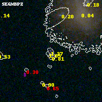 Object #6081 x,y = (5180, 2982) RA, Dec = (04:54:04.752, 02:54:51.12) = (73.51980, 2.91420) BPZ = 1.372 [1.214--2.013] type = 10.60 (SB11_A_0_l - SB3_B10) chisq2 = 0.61 ODDS = 0.57 z_cluster = 0.203