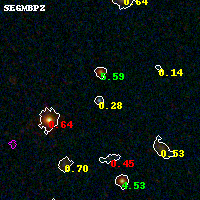 Object #6190 x,y = (5015, 3024) RA, Dec = (04:54:05.400, 02:54:53.64) = (73.52250, 2.91490) BPZ = 0.276 [0.087--0.367] type = 10.40 (SB3_B10 - SB11_A_0_l) chisq2 = 0.28 ODDS = 0.78 z_cluster = 0.203