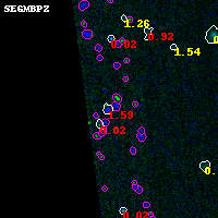 Object #6370 x,y = (677, 3105) RA, Dec = (04:54:22.776, 02:54:58.32) = (73.59490, 2.91620) BPZ = 1.594 [1.264--2.532] type = 11.00 (SB11_A_0_l) chisq2 = 1151.27 ODDS = 0.26 z_cluster = 0.203