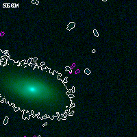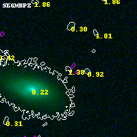 Object #6495 x,y = (973, 3155) RA, Dec = (04:54:21.600, 02:55:01.56) = (73.59000, 2.91710) BPZ = 1.376 [0.192--3.068] type = 9.20 (SB2_B10 - SB3_B10) chisq2 = 0.54 ODDS = 0.10 z_cluster = 0.203