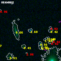 Object #6687 x,y = (2655, 3222) RA, Dec = (04:54:14.856, 02:55:05.52) = (73.56190, 2.91820) BPZ = 1.596 [1.360--2.658] type = 10.00 (SB3_B10) chisq2 = 0.04 ODDS = 0.20 z_cluster = 0.203