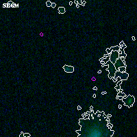 Object #6690 x,y = (2448, 3222) RA, Dec = (04:54:15.696, 02:55:05.52) = (73.56540, 2.91820) BPZ = 0.139 [0.090--2.648] type = 9.50 (SB3_B10 - SB2_B10) chisq2 = 0.00 ODDS = 0.08 z_cluster = 0.203