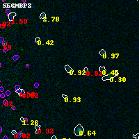 Object #6798 x,y = (760, 3261) RA, Dec = (04:54:22.464, 02:55:07.68) = (73.59360, 2.91880) BPZ = 0.919 [0.798--1.566] type = 9.60 (SB3_B10 - SB2_B10) chisq2 = 0.98 ODDS = 0.46 z_cluster = 0.203