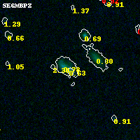 Object #6839 x,y = (3010, 3278) RA, Dec = (04:54:13.440, 02:55:08.76) = (73.55600, 2.91910) BPZ = 0.631 [0.507--2.116] type = 9.50 (SB3_B10 - SB2_B10) chisq2 = 0.00 ODDS = 0.24 z_cluster = 0.203