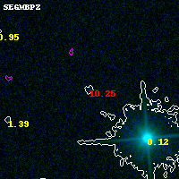 Object #6860 x,y = (6402, 3286) RA, Dec = (04:53:59.856, 02:55:09.12) = (73.49940, 2.91920) BPZ = 10.251 [0.915--10.365] type = 4.60 (ES0_B10 - Ell4_A_0) chisq2 = 900.00 ODDS = 0.88 z_cluster = 0.203