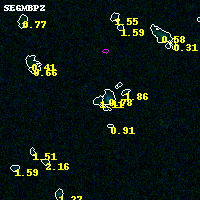 Object #6879 x,y = (1720, 3293) RA, Dec = (04:54:18.600, 02:55:09.48) = (73.57750, 2.91930) BPZ = 1.107 [0.457--2.304] type = 8.80 (SB2_B10 - SB1_B10) chisq2 = 0.02 ODDS = 0.14 z_cluster = 0.203