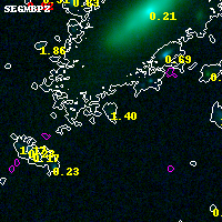 Object #6927 x,y = (3994, 3310) RA, Dec = (04:54:09.504, 02:55:10.56) = (73.53960, 2.91960) BPZ = 1.403 [0.170--2.578] type = 8.10 (SB1_B10 - SB2_B10) chisq2 = 0.02 ODDS = 0.11 z_cluster = 0.203