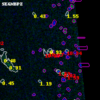 Object #6942 x,y = (7399, 3317) RA, Dec = (04:53:55.872, 02:55:10.92) = (73.48280, 2.91970) BPZ = 0.925 [0.168--2.602] type = 10.30 (SB3_B10 - SB11_A_0_l) chisq2 = 0.02 ODDS = 0.09 z_cluster = 0.203