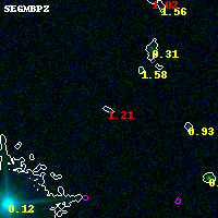 Object #6945 x,y = (6558, 3318) RA, Dec = (04:53:59.232, 02:55:11.28) = (73.49680, 2.91980) BPZ = 1.206 [0.698--2.557] type = 11.00 (SB11_A_0_l) chisq2 = 2.23 ODDS = 0.13 z_cluster = 0.203