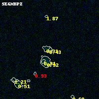 Object #7023 x,y = (6943, 3348) RA, Dec = (04:53:57.696, 02:55:13.08) = (73.49040, 2.92030) BPZ = 0.430 [0.128--3.032] type = 9.80 (SB3_B10 - SB2_B10) chisq2 = 0.00 ODDS = 0.05 z_cluster = 0.203