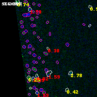 Object #7119 x,y = (675, 3389) RA, Dec = (04:54:22.800, 02:55:15.60) = (73.59500, 2.92100) BPZ = 0.305 [0.150--4.229] type = 7.10 (Scd_B10 - SB1_B10) chisq2 = 1.00 ODDS = 0.06 z_cluster = 0.203