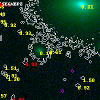 Object #7121 x,y = (2307, 3389) RA, Dec = (04:54:16.248, 02:55:15.24) = (73.56770, 2.92090) BPZ = 0.608 [0.461--4.384] type = 3.00 (Ell5_A_0) chisq2 = 0.07 ODDS = 0.21 z_cluster = 0.203