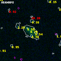 Object #7142 x,y = (3178, 3271) RA, Dec = (04:54:12.768, 02:55:08.40) = (73.55320, 2.91900) BPZ = 0.703 [0.607--1.879] type = 7.10 (Scd_B10 - SB1_B10) chisq2 = 0.00 ODDS = 0.78 z_cluster = 0.203