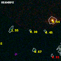 Object #7173   x,y = (2018, 3413)   RA, Dec = (04:54:17.424, 02:55:17.04) = (73.57260, 2.92140)   BPZ = 0.304 [0.136--3.896]   type = 8.20 (SB1_B10 - SB2_B10)   chisq2 = 0.19   ODDS = 0.06   z_cluster = 0.203