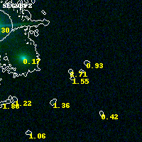 Object #7209 x,y = (2581, 3426) RA, Dec = (04:54:15.168, 02:55:17.76) = (73.56320, 2.92160) BPZ = 2.709 [0.386--3.088] type = 10.20 (SB3_B10 - SB11_A_0_l) chisq2 = 0.04 ODDS = 0.18 z_cluster = 0.203
