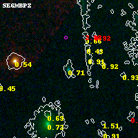 Object #7231 x,y = (2168, 3434) RA, Dec = (04:54:16.824, 02:55:18.12) = (73.57010, 2.92170) BPZ = 0.711 [0.616--2.236] type = 8.40 (SB1_B10 - SB2_B10) chisq2 = 0.00 ODDS = 0.37 z_cluster = 0.203