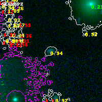 Object #7263 x,y = (5564, 3446) RA, Dec = (04:54:03.216, 02:55:18.84) = (73.51340, 2.92190) BPZ = 0.945 [0.815--1.480] type = 8.80 (SB2_B10 - SB1_B10) chisq2 = 0.00 ODDS = 0.53 z_cluster = 0.203