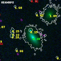 Object #7529 x,y = (589, 6175) RA, Dec = (04:54:23.136, 02:58:02.64) = (73.59640, 2.96740) BPZ = 0.146 [0.101--0.282] type = 4.60 (ES0_B10 - Ell4_A_0) chisq2 = 0.00 ODDS = 0.86 z_cluster = 0.203