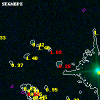 Object #7537 x,y = (2474, 6192) RA, Dec = (04:54:15.600, 02:58:03.72) = (73.56500, 2.96770) BPZ = 1.094 [0.504--2.650] type = 11.00 (SB11_A_0_l) chisq2 = 1.42 ODDS = 0.12 z_cluster = 0.203