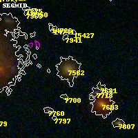 Object #7562 x,y = (1795, 4386) RA, Dec = (04:54:18.312, 02:56:15.36) = (73.57630, 2.93760) BPZ = 0.044 [0.016--0.072] type = 4.00 (Ell4_A_0) chisq2 = 0.30 ODDS = 1.00 z_cluster = 0.203