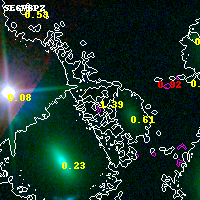 Object #7570 x,y = (2841, 4385) RA, Dec = (04:54:14.112, 02:56:15.36) = (73.55880, 2.93760) BPZ = 1.392 [0.185--2.843] type = 9.40 (SB2_B10 - SB3_B10) chisq2 = 0.42 ODDS = 0.10 z_cluster = 0.203