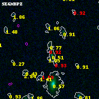 Object #7574 x,y = (5965, 4371) RA, Dec = (04:54:01.608, 02:56:14.28) = (73.50670, 2.93730) BPZ = 0.917 [0.533--2.806] type = 9.10 (SB2_B10 - SB3_B10) chisq2 = 2.54 ODDS = 0.20 z_cluster = 0.203