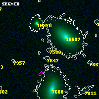 Object #7580 x,y = (3764, 4384) RA, Dec = (04:54:10.416, 02:56:15.00) = (73.54340, 2.93750) BPZ = 2.813 [0.301--3.216] type = 10.50 (SB11_A_0_l - SB3_B10) chisq2 = 0.18 ODDS = 0.18 z_cluster = 0.203