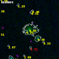Object #7597 x,y = (5530, 4364) RA, Dec = (04:54:03.360, 02:56:13.92) = (73.51400, 2.93720) BPZ = 0.947 [0.769--1.684] type = 5.20 (ES0_B10 - Sbc_B10) chisq2 = 0.00 ODDS = 0.44 z_cluster = 0.203