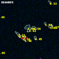 Object #7627 x,y = (7047, 4359) RA, Dec = (04:53:57.264, 02:56:13.56) = (73.48860, 2.93710) BPZ = 2.620 [1.337--2.777] type = 10.50 (SB11_A_0_l - SB3_B10) chisq2 = 0.00 ODDS = 0.42 z_cluster = 0.203