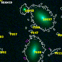 Object #7647 x,y = (3759, 4367) RA, Dec = (04:54:10.440, 02:56:14.28) = (73.54350, 2.93730) BPZ = 0.379 [0.195--3.222] type = 10.60 (SB11_A_0_l - SB3_B10) chisq2 = 0.03 ODDS = 0.06 z_cluster = 0.203